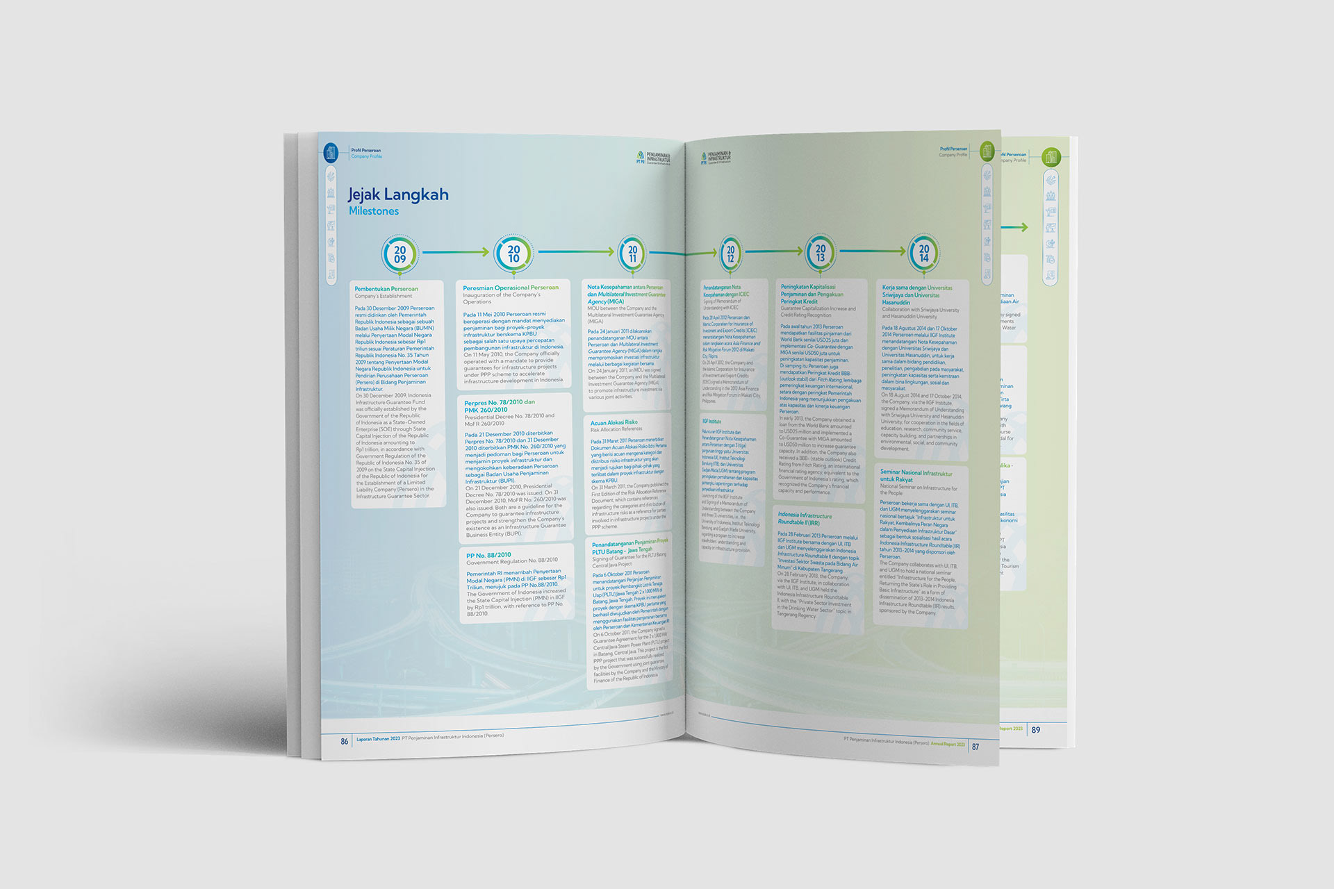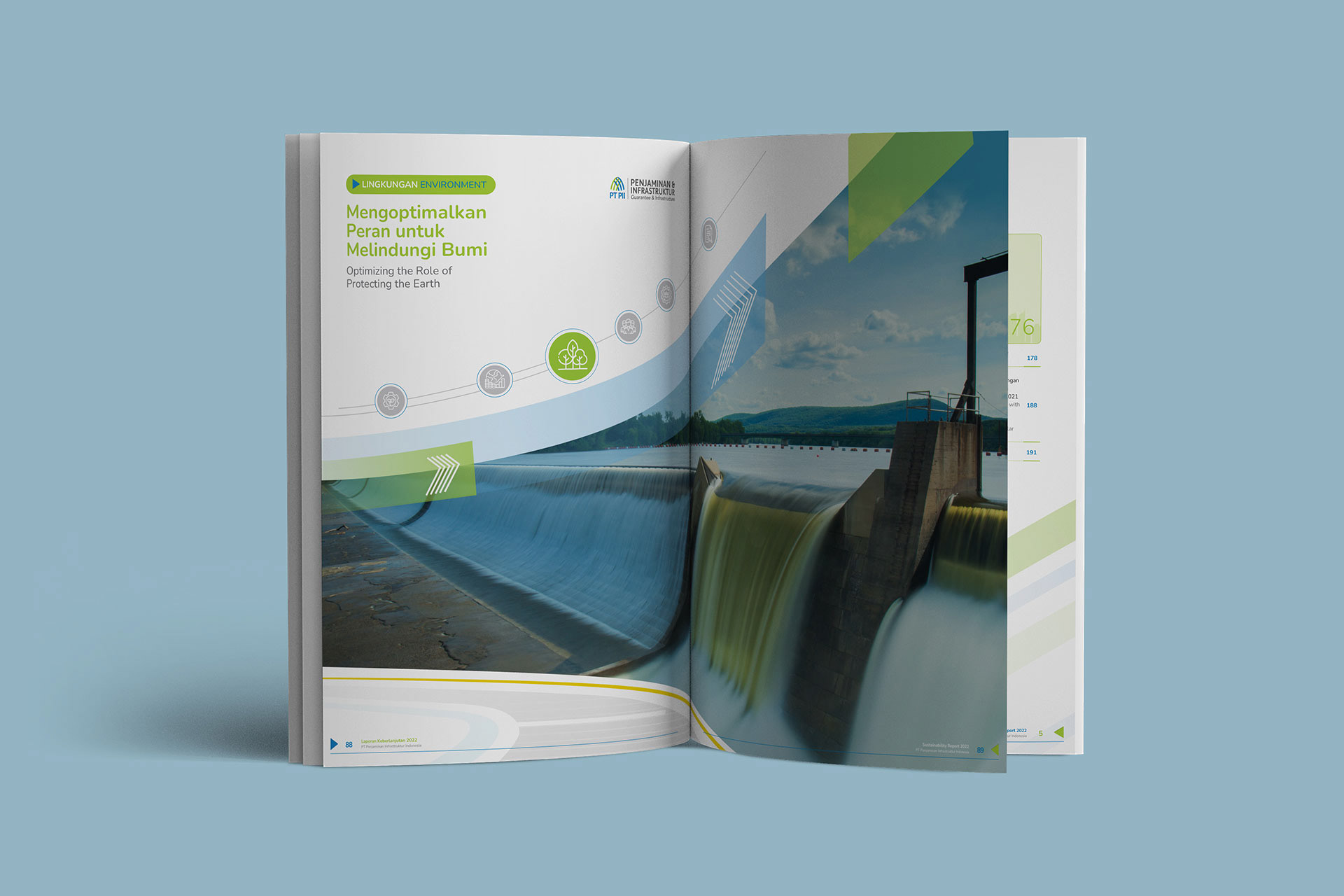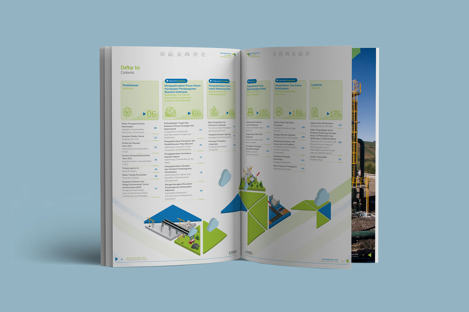 This is 3rd year of my collaboration with PT Penjaminan Infrastruktur Indonesia (Persero) (IIGF) to deliver the Sustainability Report and 2nd year for the Annual Report. I was responsible for developing a design concept from cover, layout, and photo editing, intending to create a modern and cohesive visual narrative.